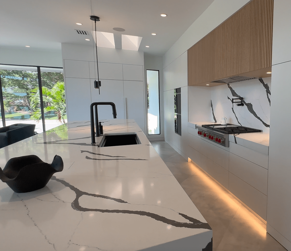 A show-stopping island remains one of the iconic elements of a dream luxury kitchen. Today’s trends focus on enhancing visual impact through extraordinary materials, dramatic waterfall edges, and unique integrated features. Perhaps an island clad in a ceramic tile waterfall countertop complemented by sleek metal accents. Or opt for a modern vibe with a monolithic island highlighted by mitered waterfall edges in an earthy, exotic wood tone.