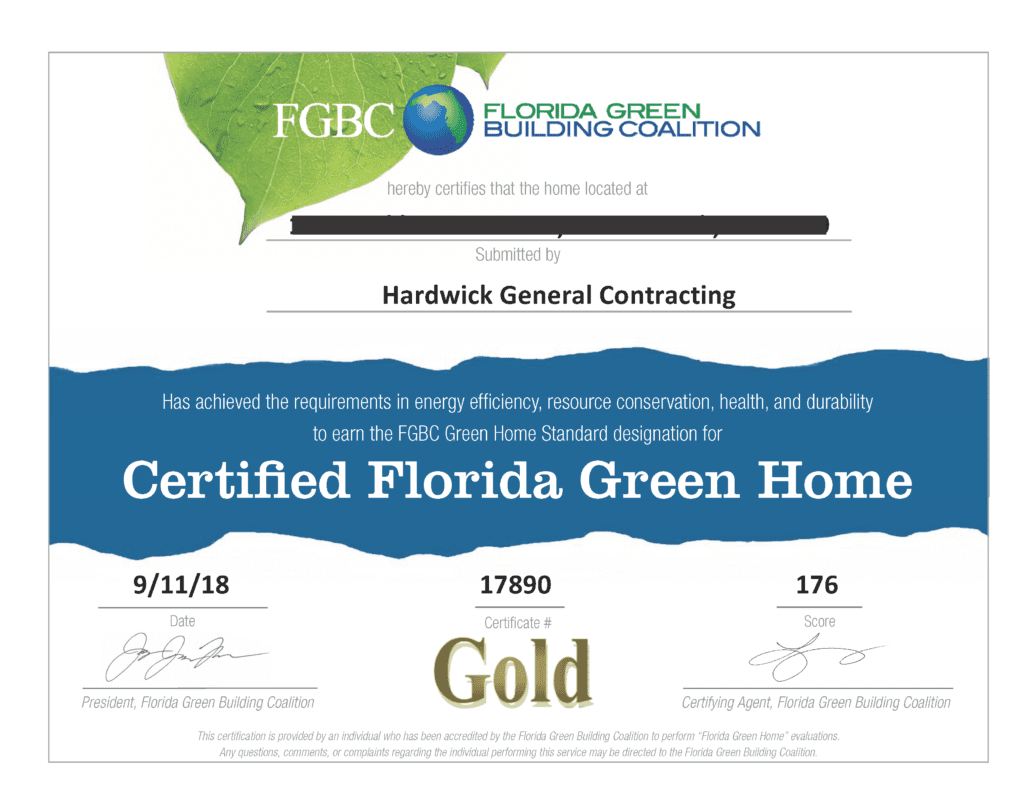 The Hardwick General Contracting team achieved another Florida Green Building Coalition (FGBC) Certification on a Winter Park, FL custom home. The 4-bedroom, 2.5 bath, 2-car with workshop home is a two-story, 3,200 SF-Living and 4,700SF-Under Roof energy efficient home. The team focused on Energy Efficiency, Water Conservation, Healthy Home, Indoor Air Quality, and the over all approach to the HardwickGC building process to exceed the FGBC Standard. The first floor exterior walls are constructed out of Insulated Concrete forms (ICF), while the walls and roof deck on the 2nd floor have energy efficient spray-foam insulation. Combined with energy efficient windows, doors, and Energy Star appliances, the home also achieved a Home Energy Rating System (HERS) of 44 which indicates the home is 56% more energy efficient than the code reference home. The luxury home also has automated roll screens around the lanai to add to the indoor outdoor living area and is equipped to add an elevator when the happy homeowners deem necessary. Learn more about Luxury Green Building at a our website: https://www.hardwickgc.com/services and the Florida Green Building Coalition at http://floridagreenbuilding.org/ Learn more about the HERS and residential energy efficiency at https://www.resnet.us/hers-index-large-scale